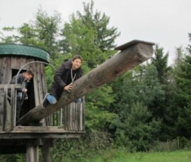 Auf der Wanderung sind wir bei Spielplätzen, einem Hirschgehege und einem Aussichtsturm vorbeigekommen. Auf diesem Aussichtsturm war es sehr windig. Die Haube von Diya flog davon und wir mussten sie suchen. Wir fanden die Haube in einem Gehege.