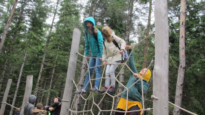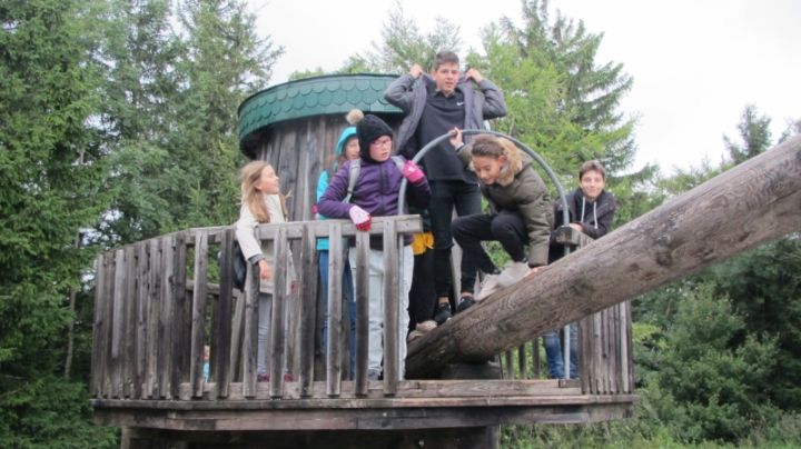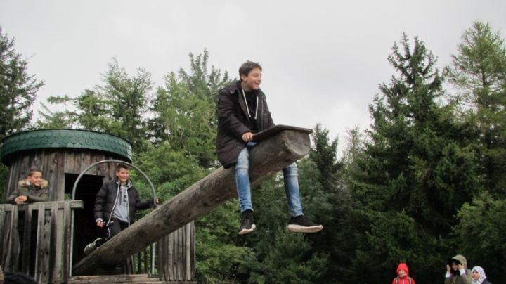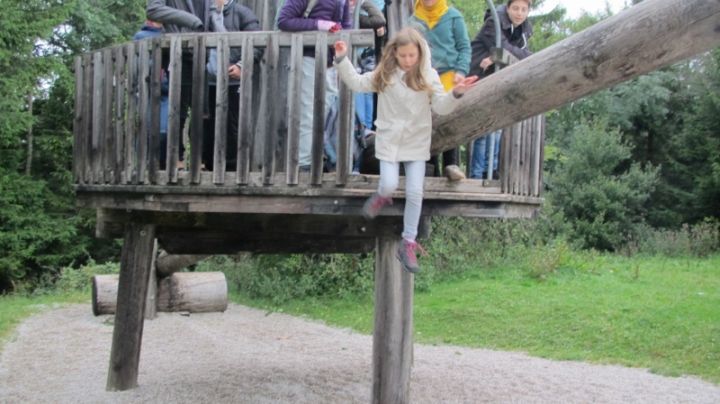 Auf der Wanderung sind wir bei Spielplätzen, einem Hirschgehege und einem Aussichtsturm vorbeigekommen. Auf diesem Aussichtsturm war es sehr windig. Die Haube von Diya flog davon und wir mussten sie suchen. Wir fanden die Haube in einem Gehege.
