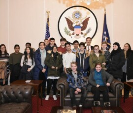 On February 13th my English group and I went to the American Embassy in the ninth district.  Before we entered the embassy, we had our passports checked for security reasons. After that we were taken to a room where Mr N.T. Scharpf was waiting for us. He told us about the American dream. Many immigrants started to move to the USA with little money two centuries ago and few of them managed to become rich and successful, they actually made the dream come true.  A very famous Russian immigrant is Sergey Brin, the co-founder of Google. Mr N.T. Scharpf also told us about the immigration waves Americans are currently having and are likely to have in the future. Eventually, we were photographed and informed about the pictures of previous ambassadors hanging on the wall as well.