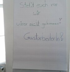 Wie man sich als Ausländer fühlt, kann ich nur allzu gut verstehen. Gestern bei der Ausstellung kam es mir vor, als ob ich einen Teil von mir wieder gefunden hätte, welchen ich für verloren hielt. Man hat irgendwie das Bedürfnis, sich mit den Menschen von damals zu identifizieren und sich in deren Lage zu versetzen. Der überfüllte Südbahnhof, weinende Mütter, die ihre Söhne/Töchter noch einmal in den Arm nehmen, die Ahnungslosigkeit und das gewisse Kribbeln, das einen andauernd verfolgt. So denke ich, müssen sich Gastarbeiter gefühlt haben. Und dann noch der ganze Papierkram, den es zu erledigen gab, die überteuerten „Wohnungen“, die gesellschaftliche Ausgrenzung und die harte Arbeit, weswegen man eigentlich überhaupt nach Österreich kam,…Das Alles konnte man doch nicht als „Leben“ bezeichnen, oder?