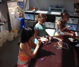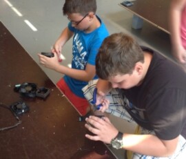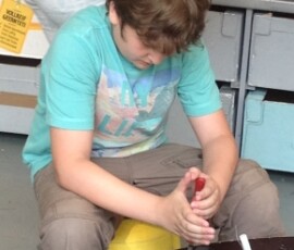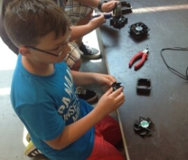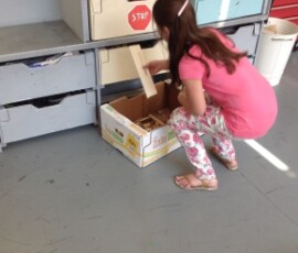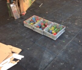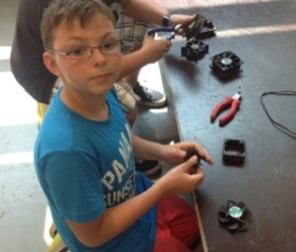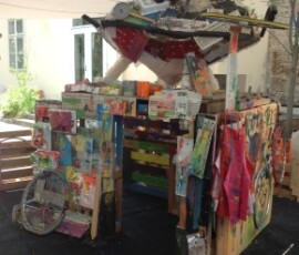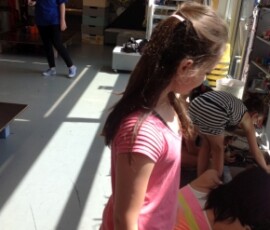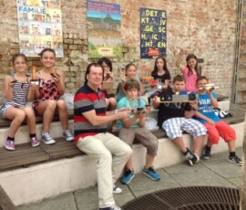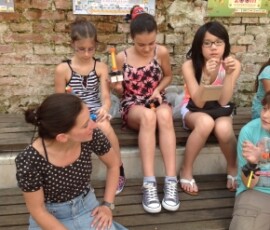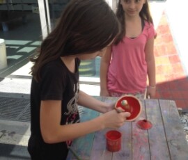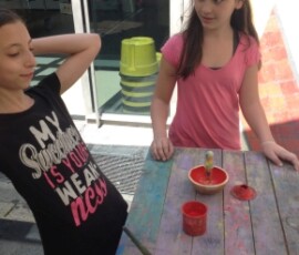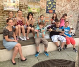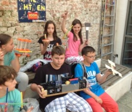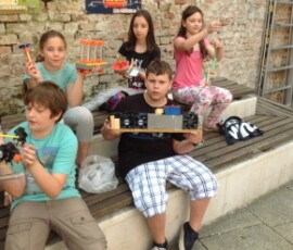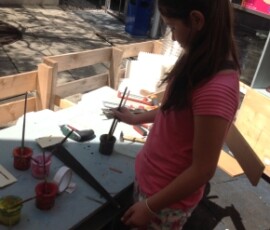 Im Hof konnte man auch Steine anmalen und etwas aus Holz bauen. Das Arbeiten mit den Sägen und Bohrmaschinen war sehr interessant. Viele Kinder haben die Arbeiten auch mit Stickern verziert. Aufpassen mussten wir bei der Arbeit mit der Heißklebepistole, da sollte man auch Handschuhe benützen.