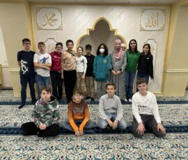 Die 2abe des katholischen Religionsunterrichts und die 2a des islamischen Religionsunterrichts gingen gemeinsam auf Exkursion, um die jeweils andere Religion ein Stück weit näher kennenzulernen. An einem Nachmittag besuchten wir den Stephansdom und fuhren mit dem Aufzug in den Nordturm, um die Pummerin von der Nähe zu sehen und den Ausblick über Wien zu genießen. Nach einer kurzen Runde im Stephansdom ging es noch auf ein Eis, um den Nachmittag ausklingen zu lassen. Zwei Wochen später besuchten wir die Moschee in der Schönbrunner Straße. Dort erklärten die muslimischen Schüler:innen den katholischen alles, was in der Moschee zu sehen ist, zeigten ihnen, wie das Gebet funktioniert und was im Islam wichtig ist. Im gemeinsamen Gespräch konnten die Schüler:innen neben Unterschieden auch viele Gemeinsamkeiten der Religionen entdecken.