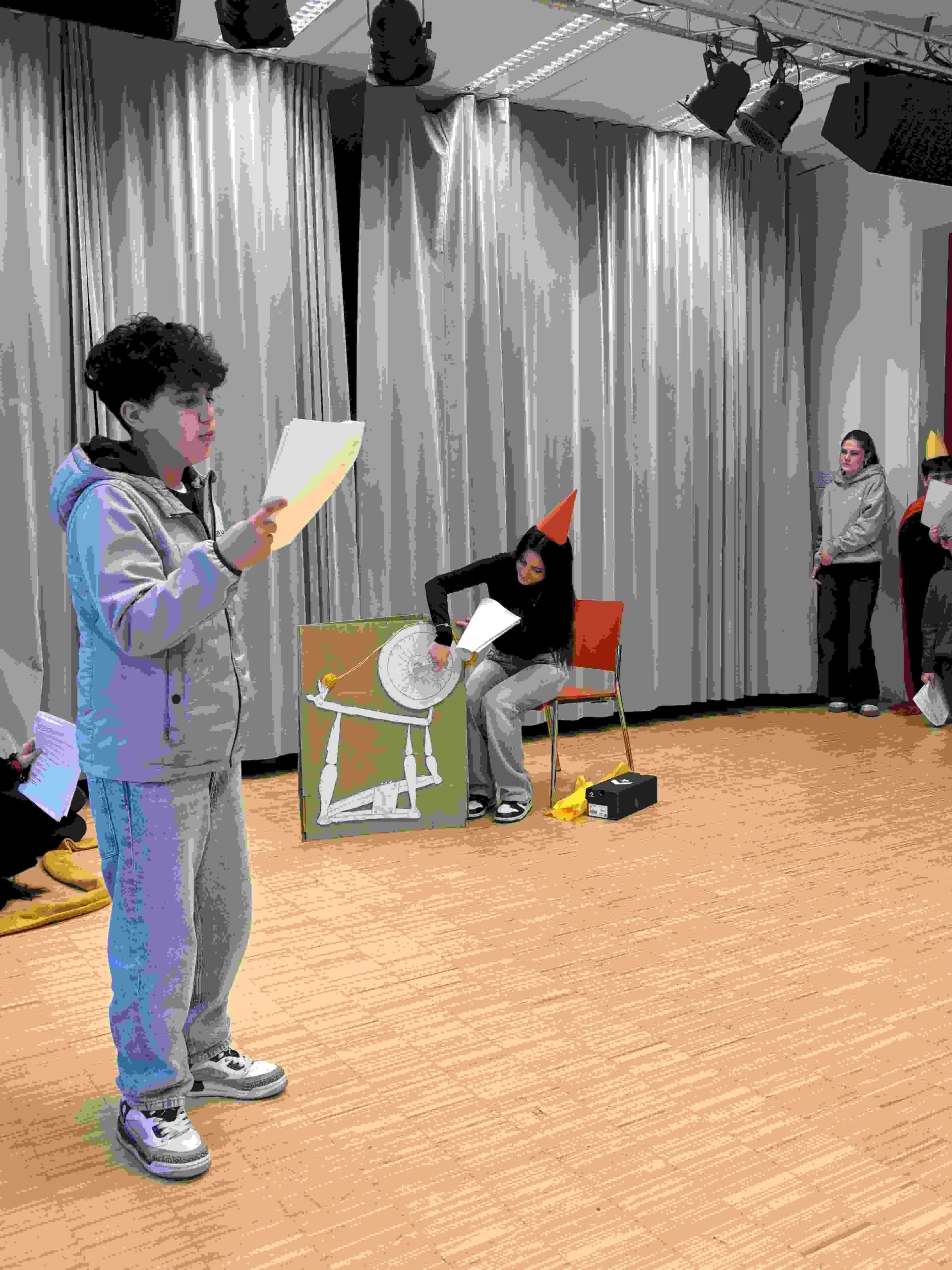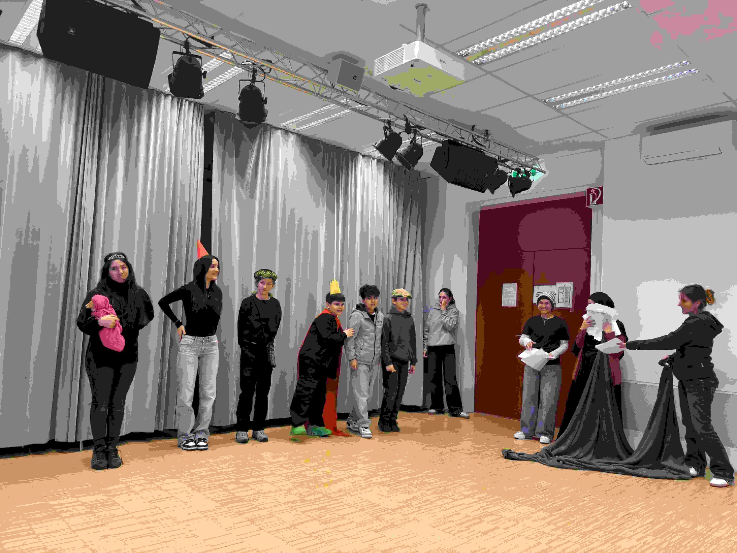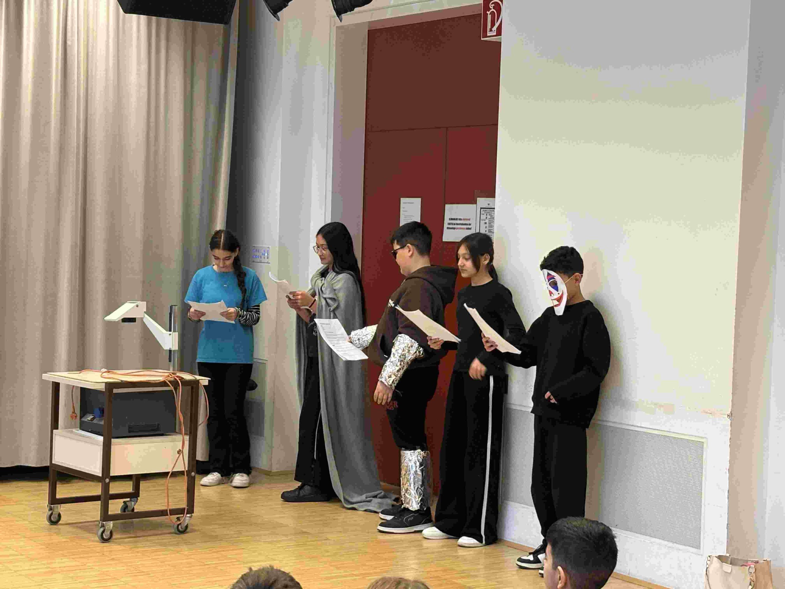 Bereits in den Wochen davor wurde intensiv vorbereitet: Im Deutschunterricht der beiden 8. Klassen entstanden Lesetheaterstücke, zudem wurden Kostüme konzipiert und einfache Bühnenbilder gestaltet.
