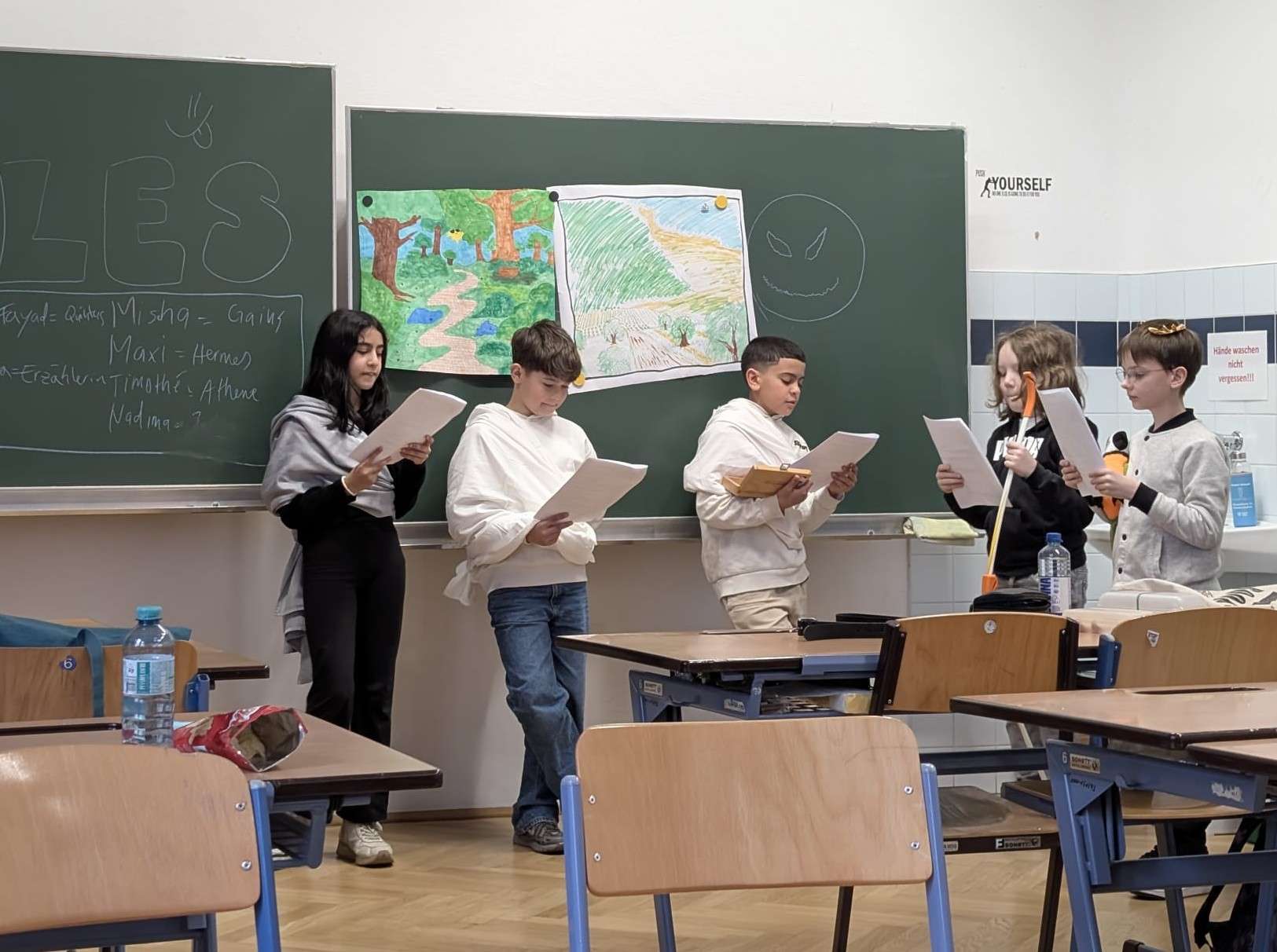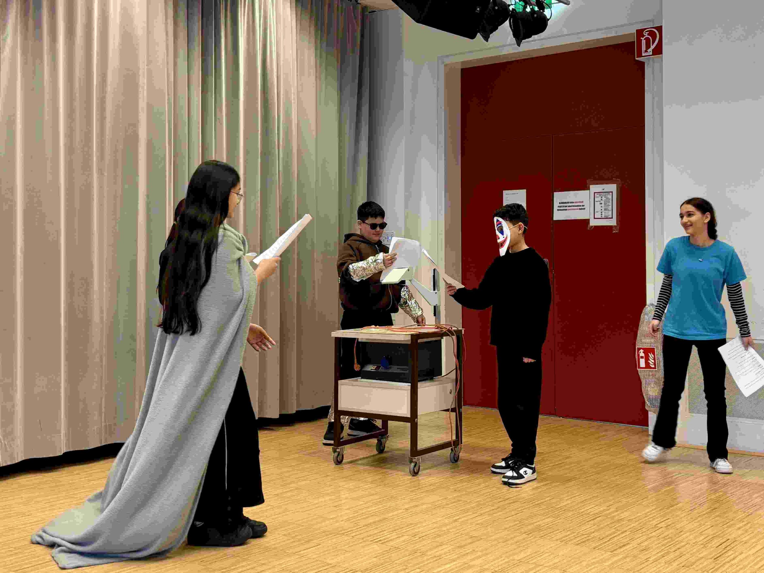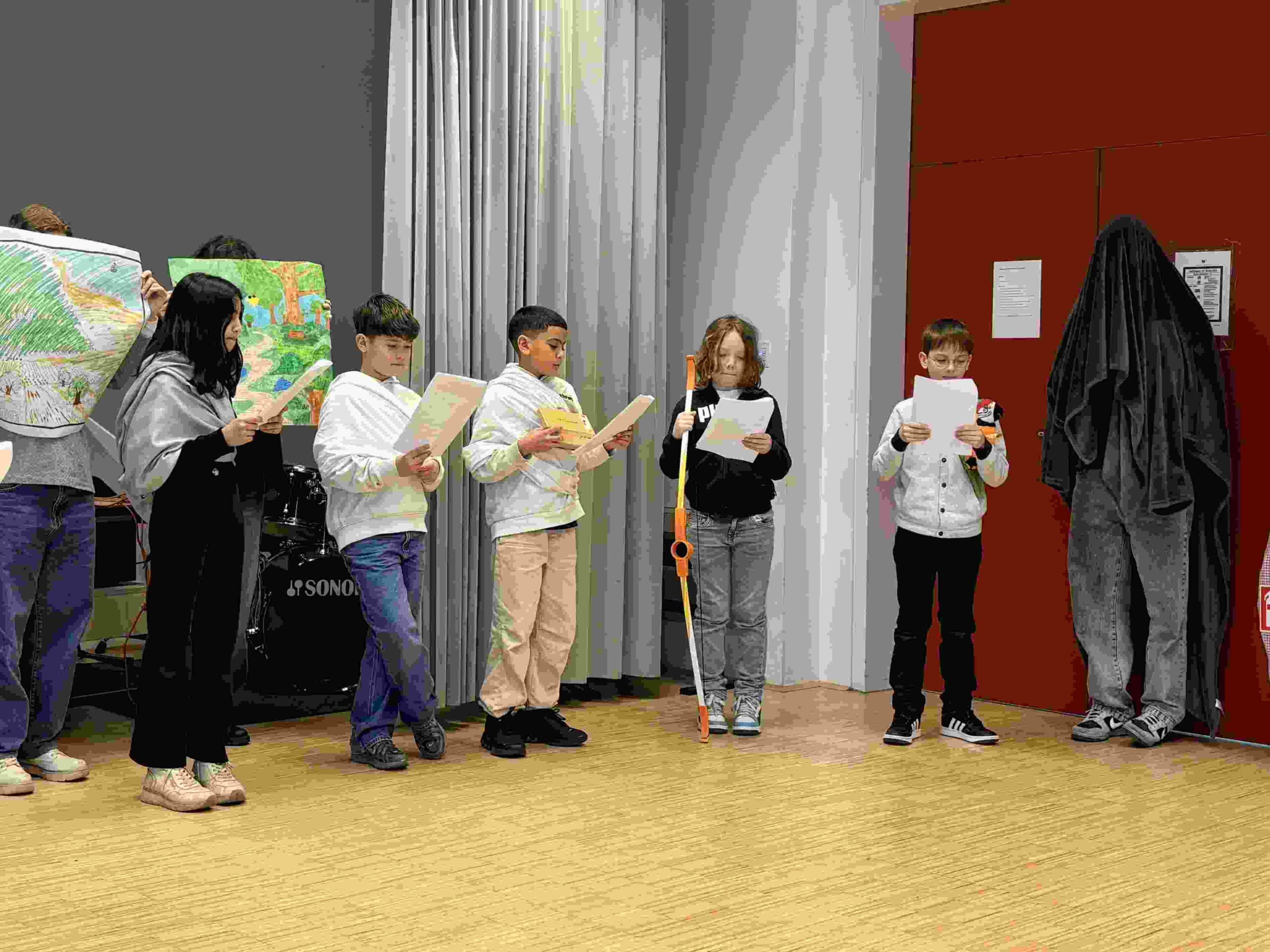 Bereits in den Wochen davor wurde intensiv vorbereitet: Im Deutschunterricht der beiden 8. Klassen entstanden Lesetheaterstücke, zudem wurden Kostüme konzipiert und einfache Bühnenbilder gestaltet.
