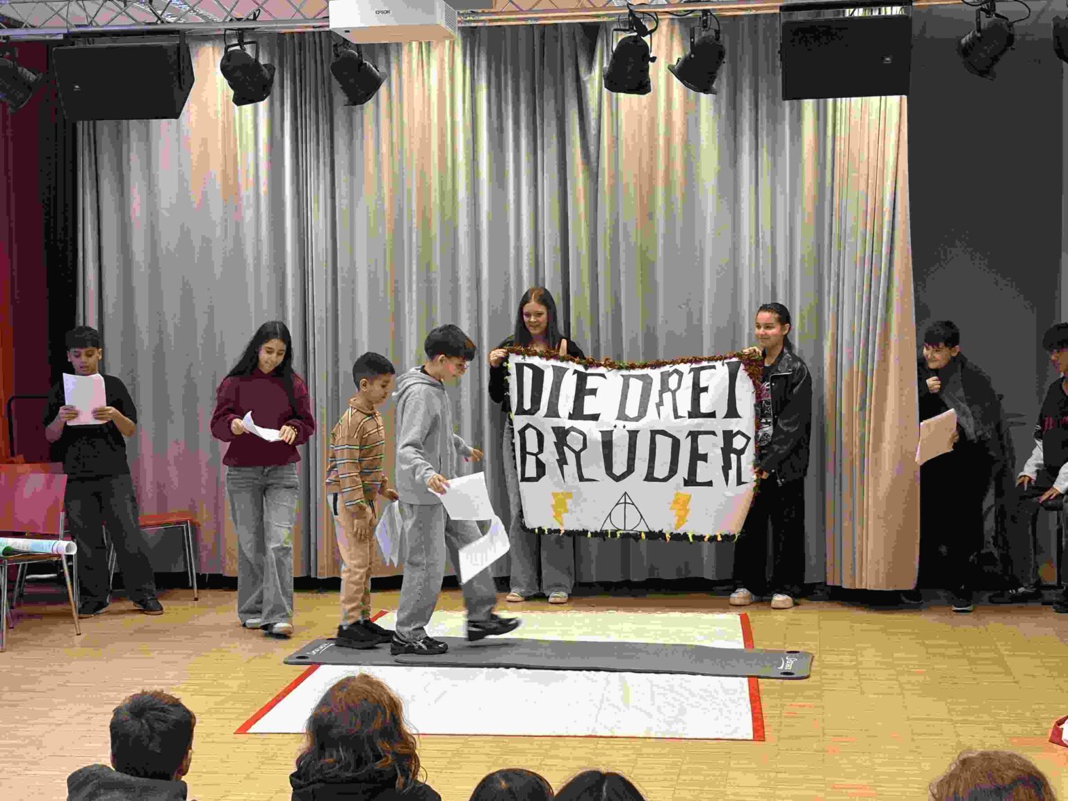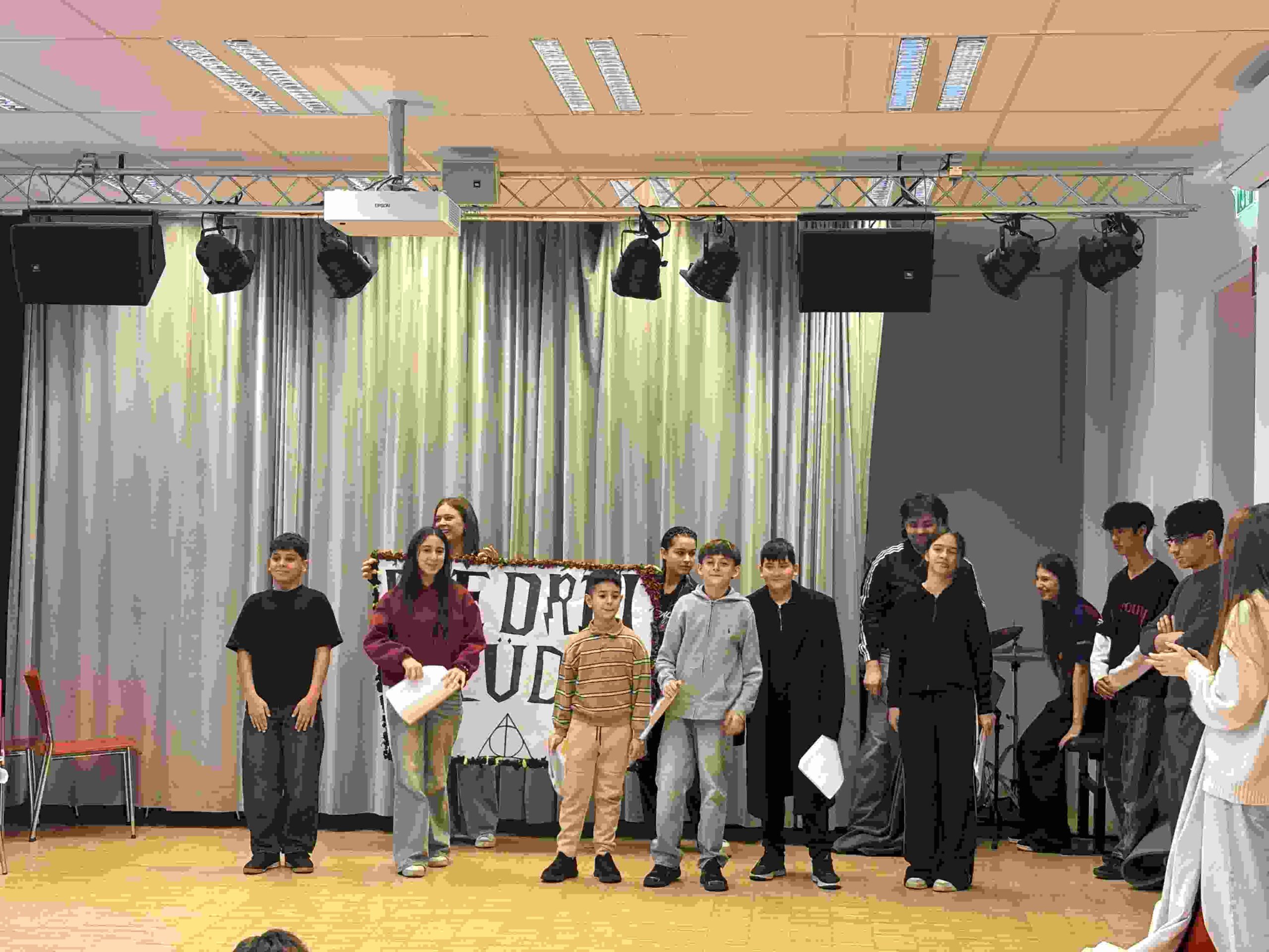 Den krönenden Abschluss bildete der gemeinsame Auftritt auf der Bühne: Zu sehen waren „Die drei Brüder“ (ein Märchen aus der Welt von Harry Potter), „Die gestohlene Superkraft“ (eine Geschichte voller Superheld:innen), „Rumpelstilzchen“ sowie „Eine wunderbare Erzählung aus dem alten Griechenland“.