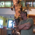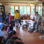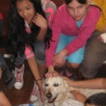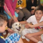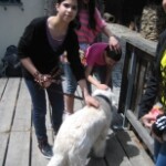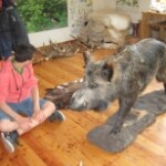 Neben Stammscheiben, Wurzeln, Geweihen und weiteren angreifbaren Waldgegenständen konnten in der Waldschule auch präparierte Wildtiere gestreichelt werden. Das Sehen und Fühlen des struppigen Dachsfelles, der mächtigen Eckzähne des Wildschweins oder der Schwimmhäute des Bibers gaben uns einen Eindruck über die unterschiedlichen Lebensweisen dieser Tiere. Wir hatten aber auch unser eigenes Tier mit, nämlich die Hündin Tina von Frau Prof. Ruck, die wir abwechselnd führen durften.