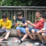 Das Highlight war dann das gemeinsame Grillen. Auf das haben wir uns schon sehr gefreut. Das Feuer wurde selbst mit Holz gemacht und das Essen, das wir selbst mitgenommen haben, konnten wir auf langen Holzspießen selbst zubereiten. Das war ein sehr lustiger und interessanter Tag im Wald!