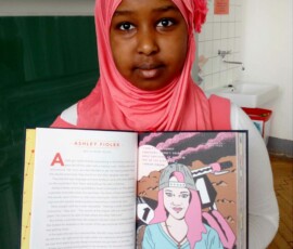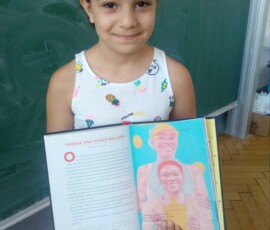 Robin, Berfin, Sara, Mehmet, Sheila, Sophie, Elif, Anisa, Iqra, Mira, Ermuun, Elena, Maid, Kacper aus der 2b präsentieren die Lebensgeschichten außergewöhnlicher Frauen wie Mathematikerin, Radsportlerin, Aktivistin, Grundschülerin, Piratin, Malerin, Rockmusikerin, Ärztin, Physikerin, Rapperin, Ballerina, Surferin, Rennfahrerin, Schriftstellerin.