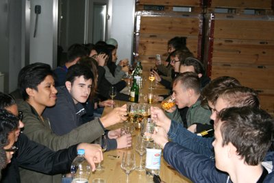 Außerdem beeinträchtigte Dauerregen den geplanten Exkursionsablauf. Die Führung konnte nur in den Produktions- und Lagerräumen, aber nicht im Weingarten durchgeführt werden.