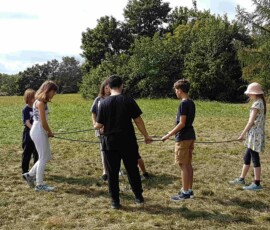 Zwei schulexterne, sehr sympathische Teambuildings-TrainerInnen planten ein abwechslungsreiches Programm und begleiteten die SchülerInnen die meiste Zeit. Die SchülerInnen konnten Kennenlern- und Gruppenspiele sowie Kooperationsübungen und Stationenbetriebe ausprobieren – der Zusammenhalt im Team war großartig!